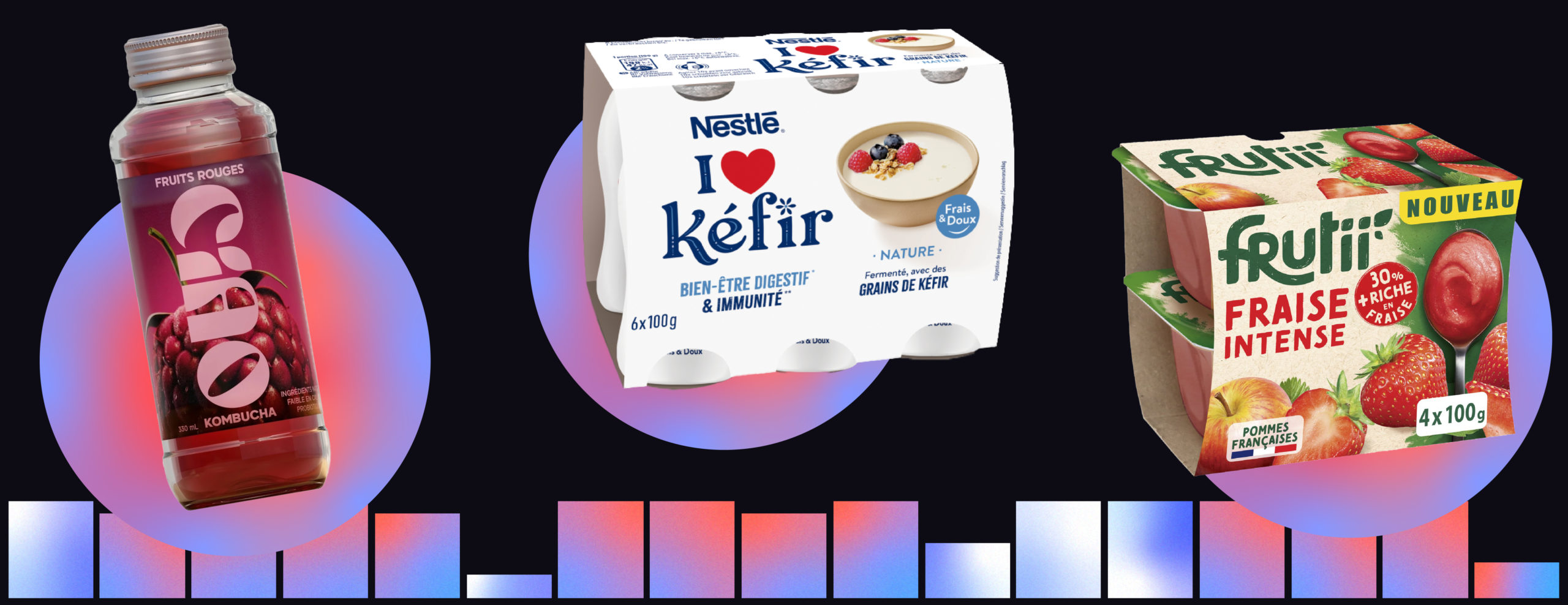 Santé / Nutrition : Ciao Kombucha (pour un soda naturel et plus sain), I Love Kefir (l’alternative végétale Bien-Être aux produits laitiers), Frutii (pour des compotes plus saines avec plus de fruits)