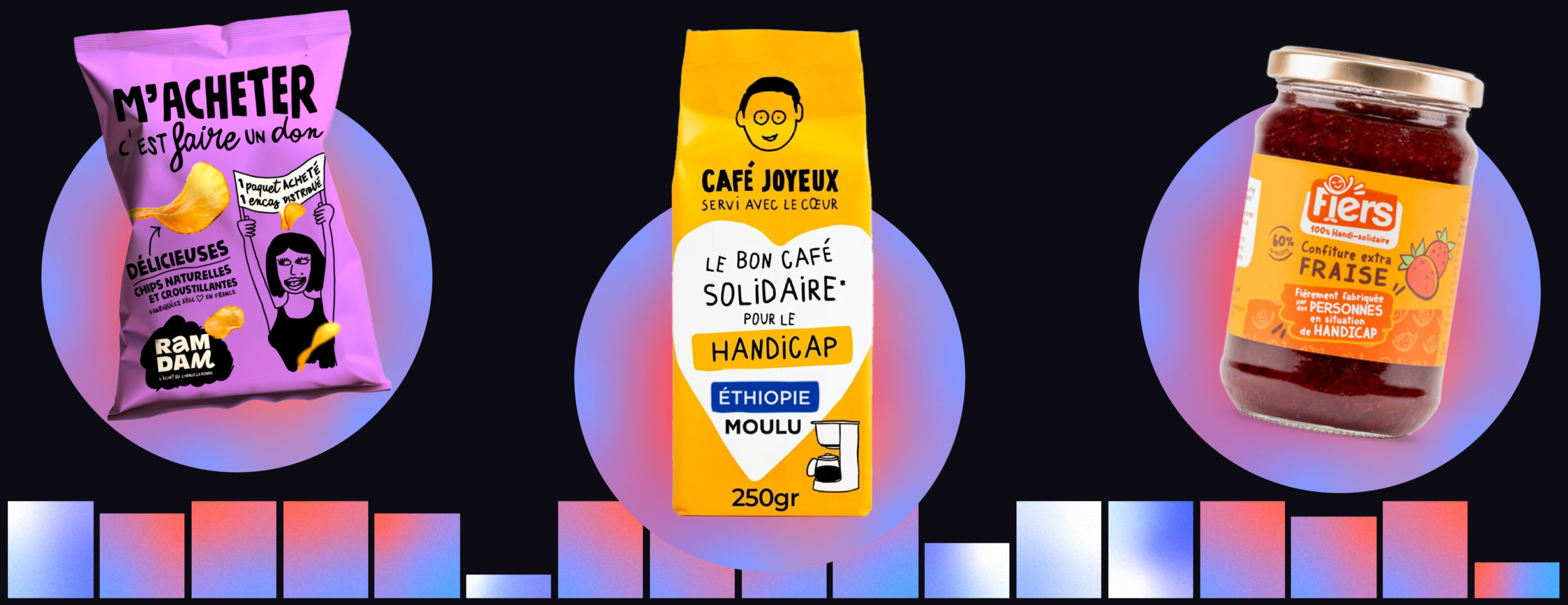 Social : Ramdam Social (pour un acte d’achat solidaire), Café Joyeux (pour l’inclusion) et Fiers (pour l’insertion des travailleurs handicapés)