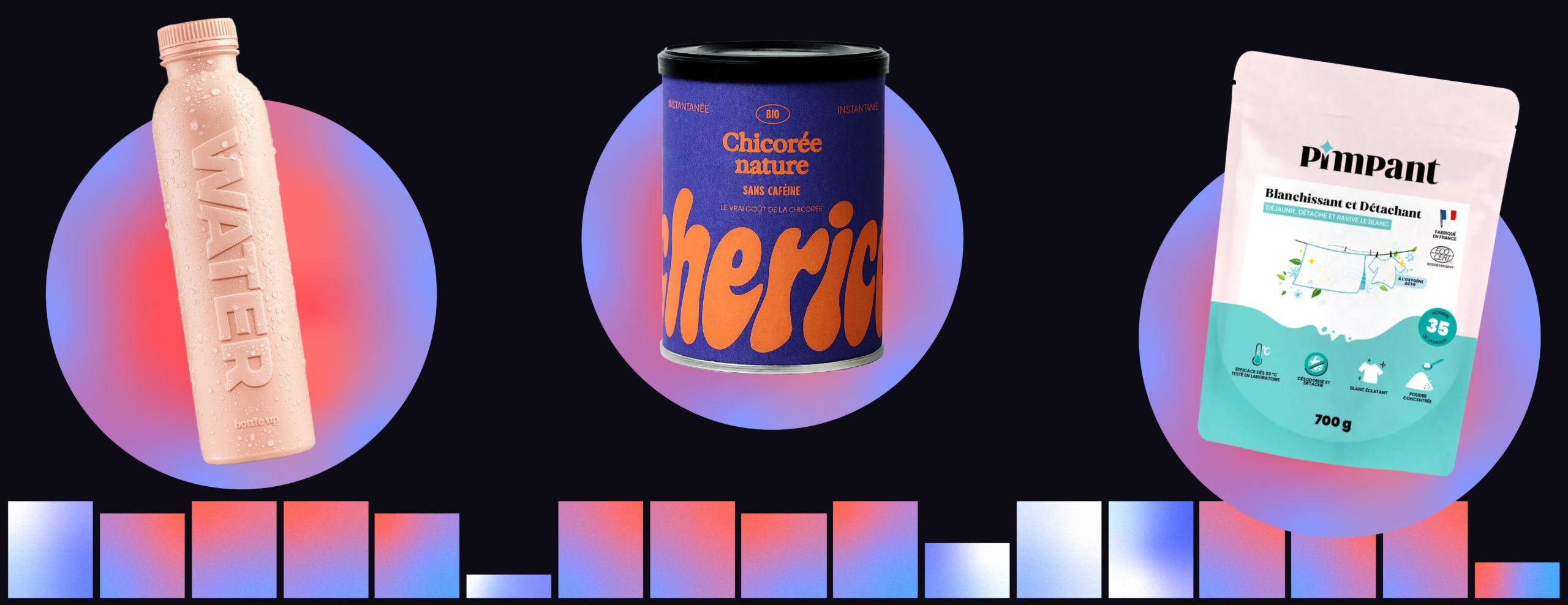 Écologie : Bottle Up (pour l’emballage réutilisable), Cherico (pour un faible impact environnemental), Pimpant (stop aux surplus d’emballages)