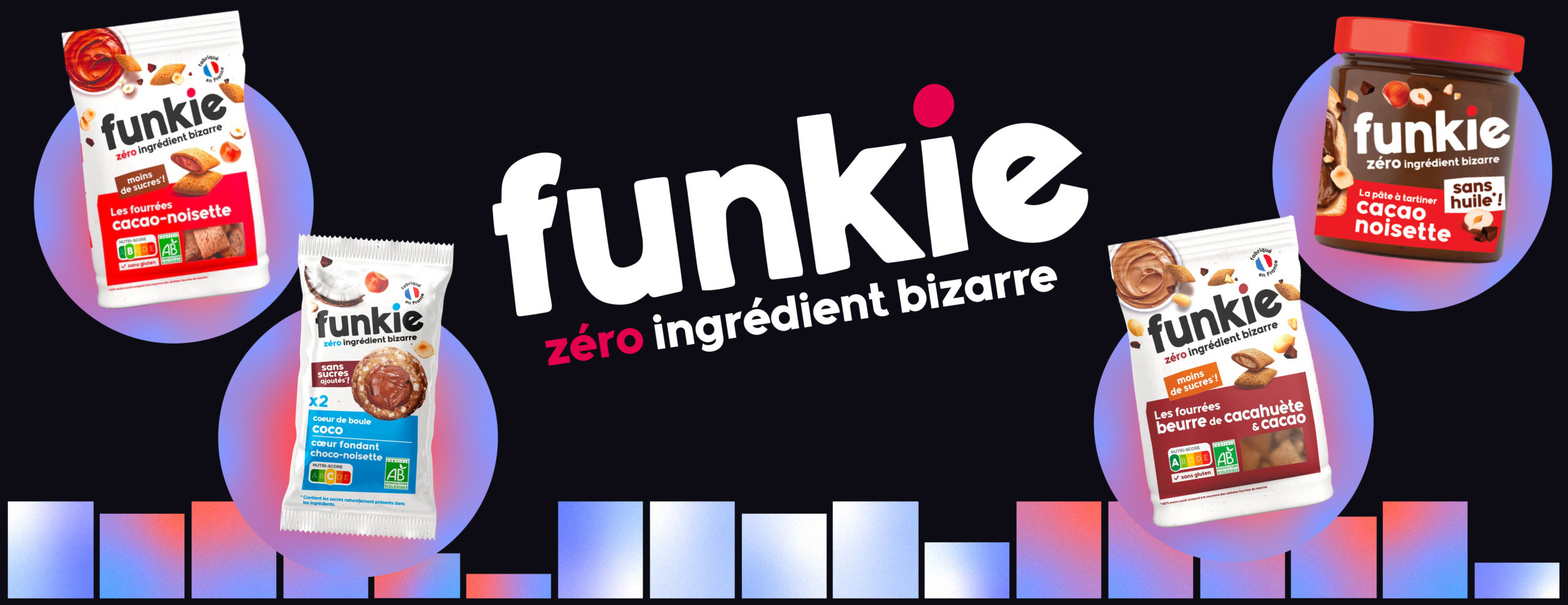 Lors de la refonte de Funkie en 2024 (anciennement Funky Veggie), Pixelis a mis en avant le combat de la marque : la baseline « Zéro Ingrédient Bizarre » est désormais indissociable de son logo. Un an plus tard avec ce repositionnement, la marque double son chiffre d’affaires annuel.