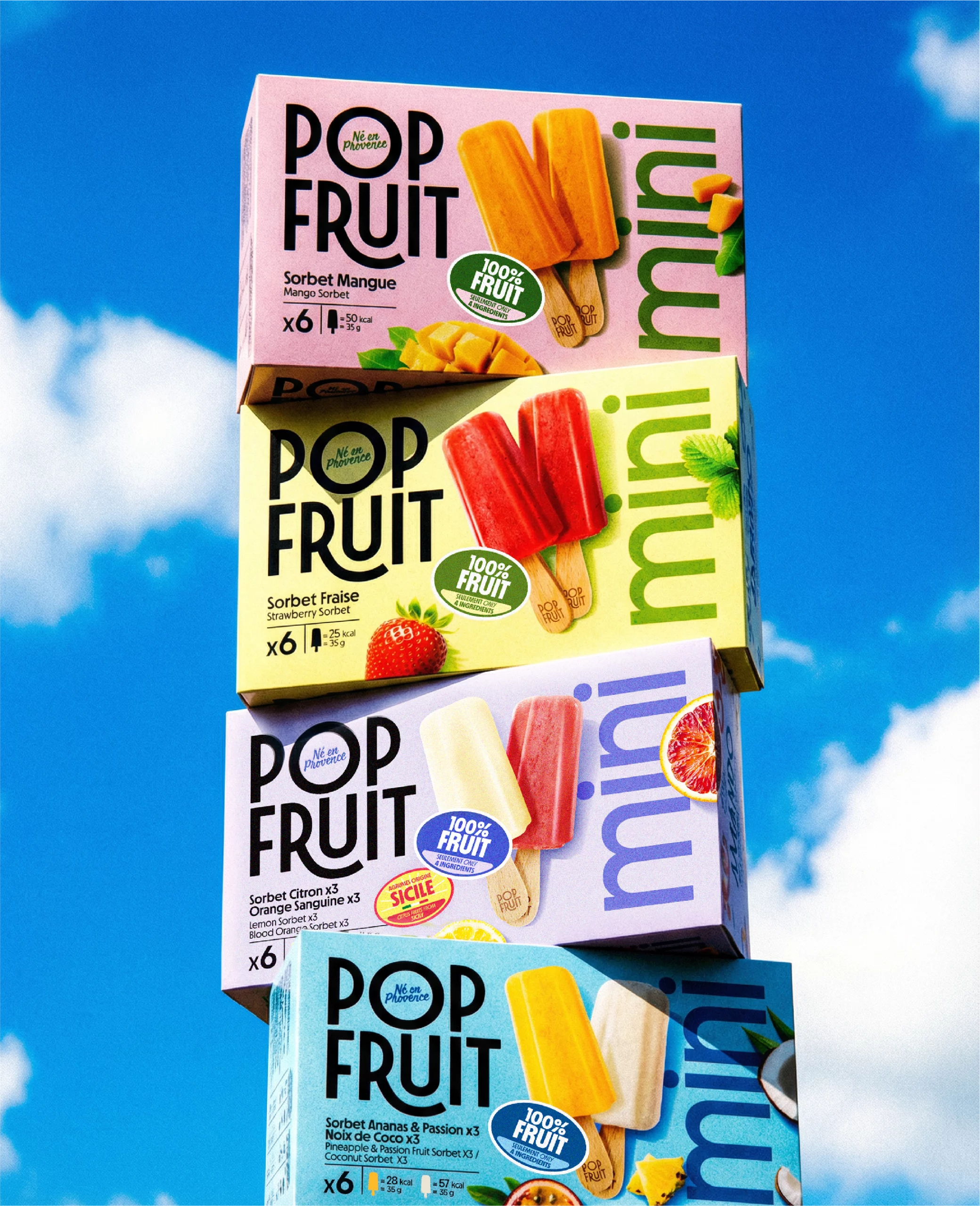 Face à un marché des glaces de plus en plus concurrentiel en grande distribution, marqué par l’essor des bouchées glacées et des offres standardisées, Pop Fruit, marque française de sorbets sur bâtonnets développée par Alfagel, devait affirmer une singularité forte. Portée par une qualité produit exigeante, un concentré de fruits exceptionnel, la marque entrait dans une nouvelle phase de développement.